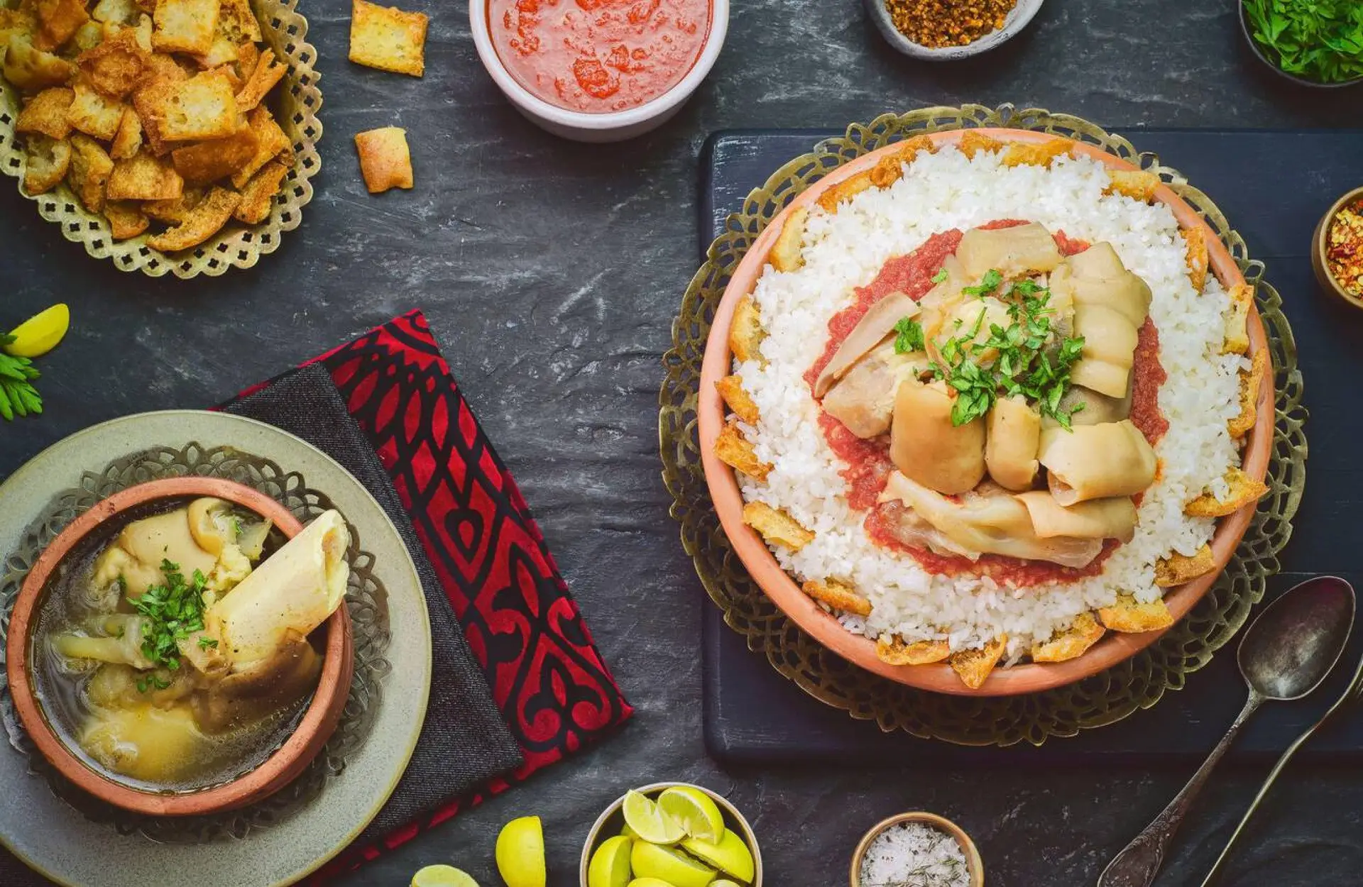 Piatto a strati composto da riso, pane, carne (agnello o manzo) e una salsa all’aglio e aceto; è il preferito durante le festività.