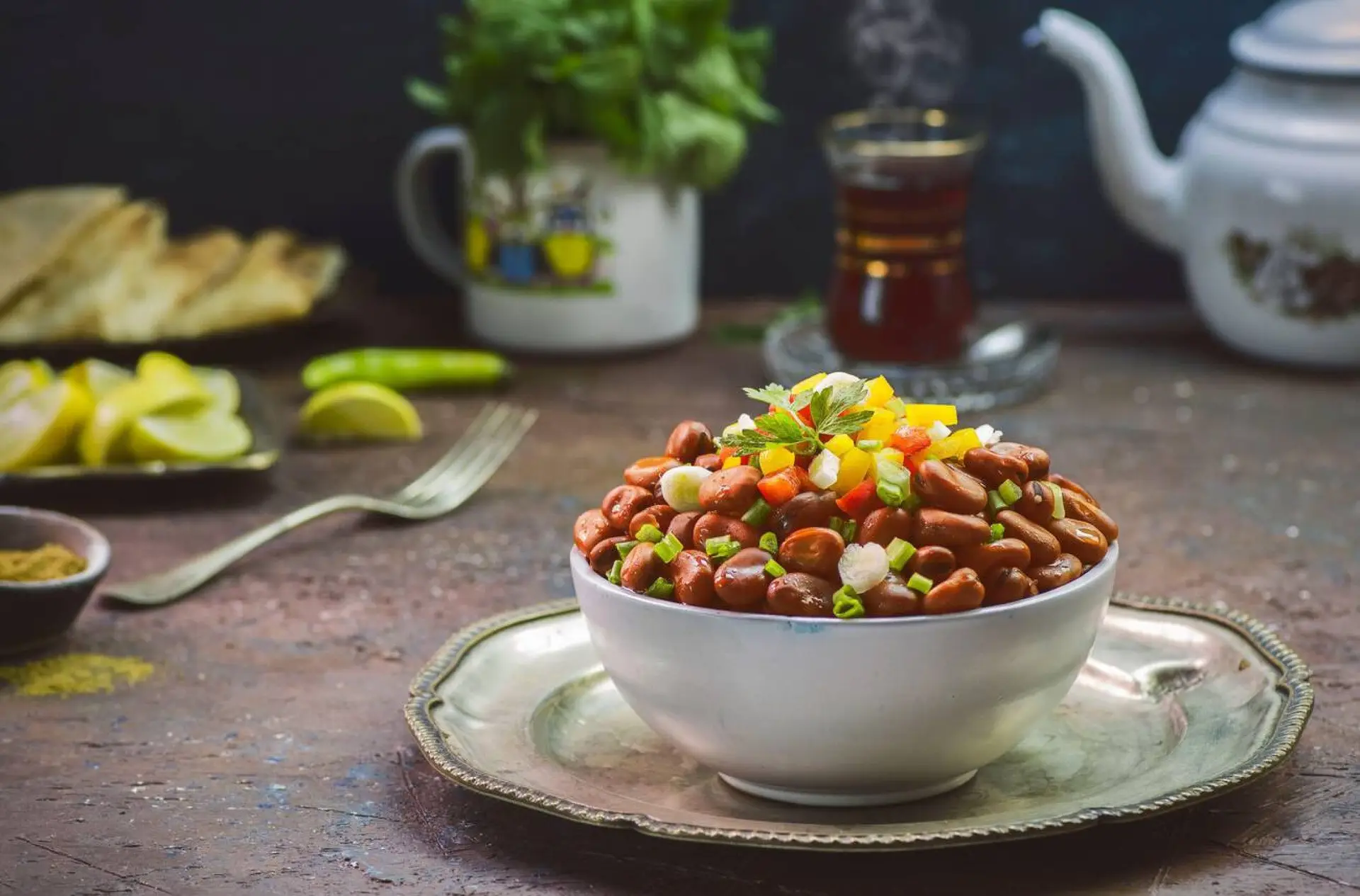 Fave cotte a fuoco lento e schiacciate con aglio, limone e olio d’oliva; è l’alimento base della colazione.