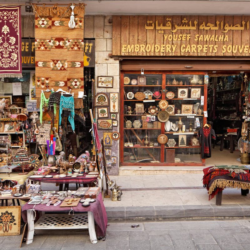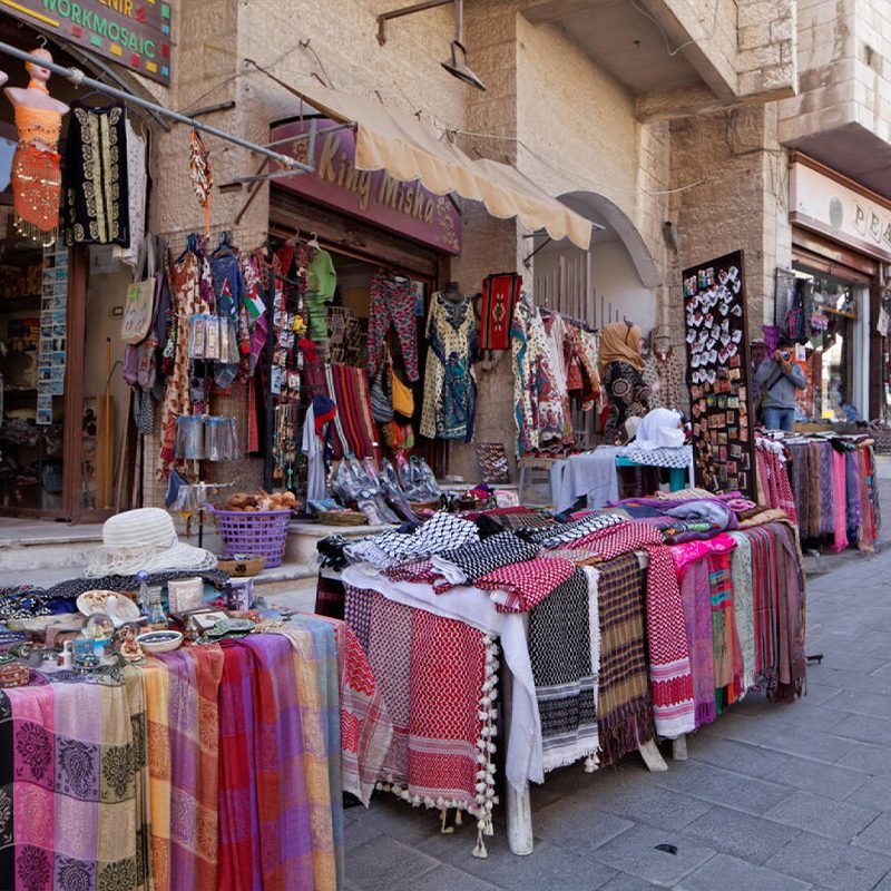 Durante la vostra visita a Madaba, fermatevi in via Hussein bin Ali o “The Tourist Street” per acquistare artigianato e prodotti specifici dei mosaici e dell’iconografia religiosa che si trovano a Madaba.